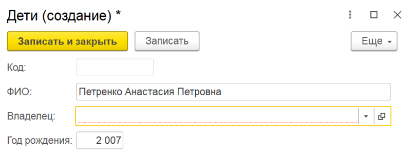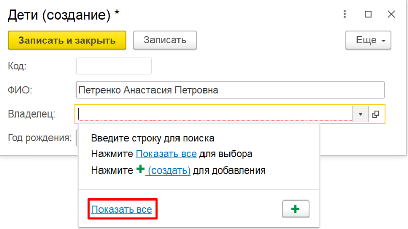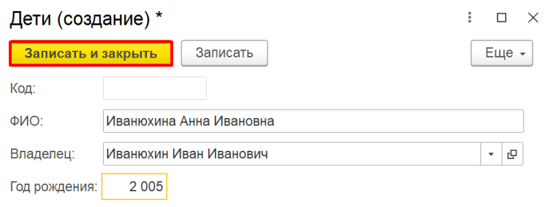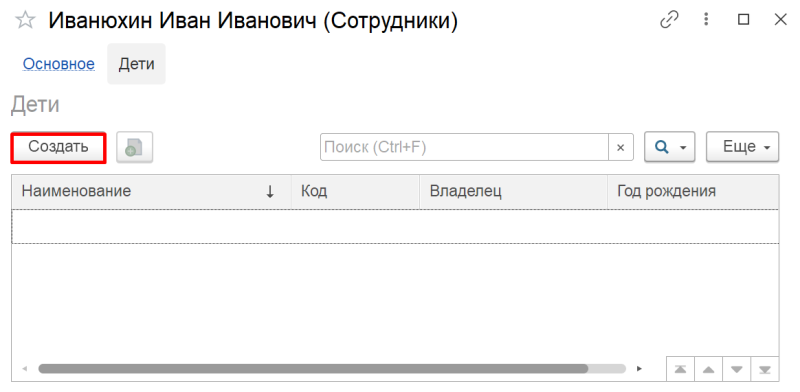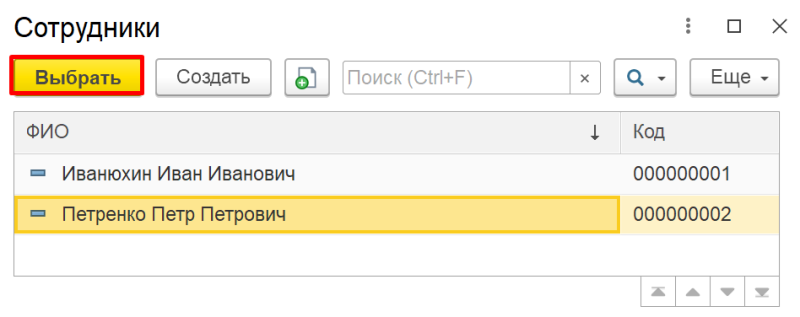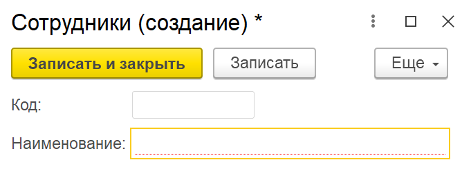 Этой командой мы и воспользуемся для создания новых элементов справочника, не открывая при этом списка сотрудников.