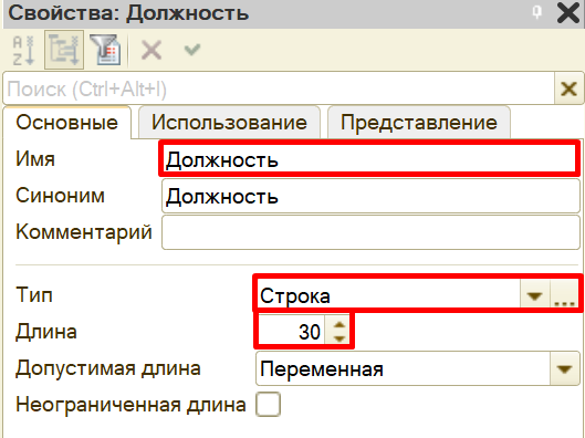 Здесь для нас представляют интерес длина кода и длина наименования. Длина кода – важное свойство справочника.
